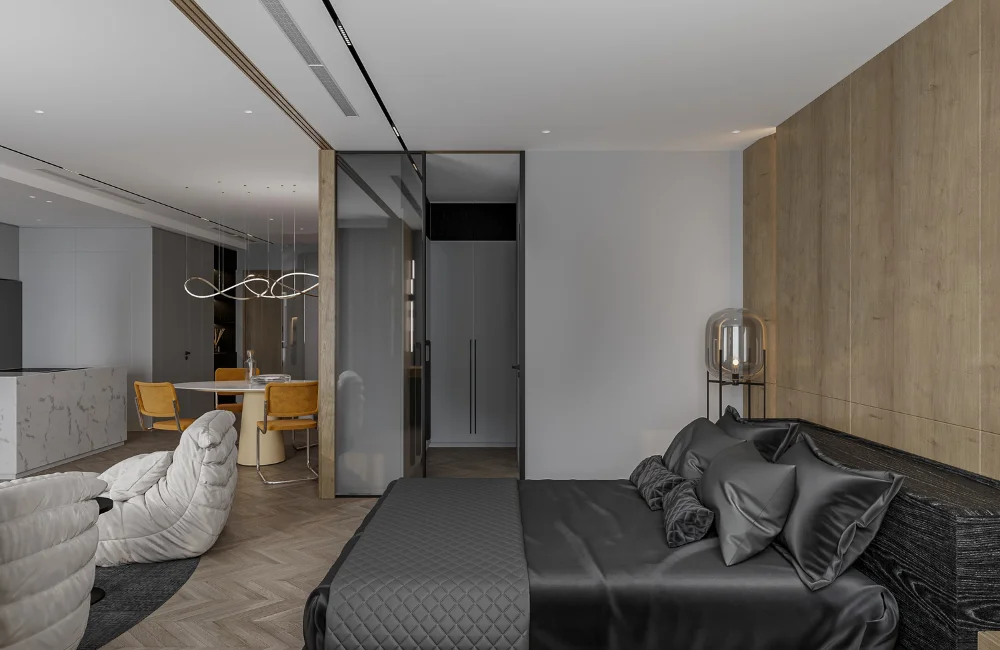 ข้อจำกัดเรื่องพื้นที่สามารถแก้ไขได้ด้วยการเลือกใช้เฟอร์นิเจอร์แนวสูง หรือการบิวท์อินตู้เสื้อผ้าสั่งทำให้มีขนาดพอดีกับพื้นที่ตั้งแต่พื้นจรดเพดาน เพื่อลดมุมอับและเพิ่มพื้นที่จัดเก็บของในแนวตั้ง วิธีนี้ไม่เพียงแต่ช่วยให้ห้องดูเป็นระเบียบ แต่ยังหลอกสายตาให้ห้องนอนขนาดเล็กดูกว้างขวางและไม่อึดอัดอีกด้วย