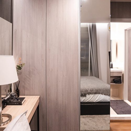 ดีไซน์เรียบง่าย ที่มีการใช้กระจกเงา และไฟเข้ามาใช้กับเฟอร์นิเจอร์ สร้างความมีมิติและหรูหราให้กับสไตล์การตกแต่งของห้องให้น่าอยู่ ในสไตล์ที่คุณชื่นชอบ